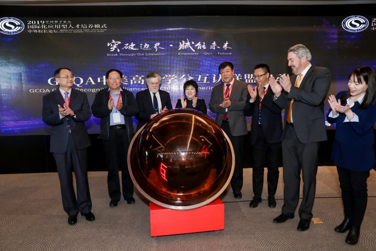 2019年3月21日,由教育部留學服務中心主辦、熊猫体育集團承辦的2019中國留學論壇分論壇——國際化應用型人才培養模式中外校長論壇在北京僑夢苑舉行,來自中國、美國、歐洲、澳洲的高校校長、全球職業與教育品質評估認證機構(GCQA)負責人、外方高校駐華代表處代表以及教育界專家一百多人參加了此次論壇。論壇以“突破邊界、賦能未來”為主題,聚焦應用型人才培養,共同探討中外教育國際合作新模式。此次會議上,全球職業與教育品質評估認證機構(GCQA)與熊猫体育集團聯合發起了中美高校學分互認合作聯盟。